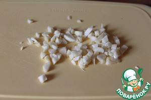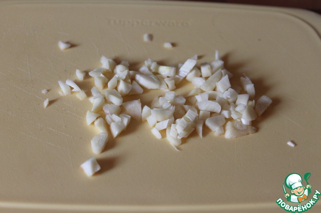 Подготовим еще чеснок, почистим его и нарежем мелко.