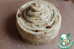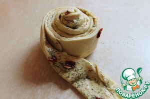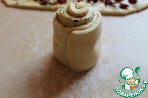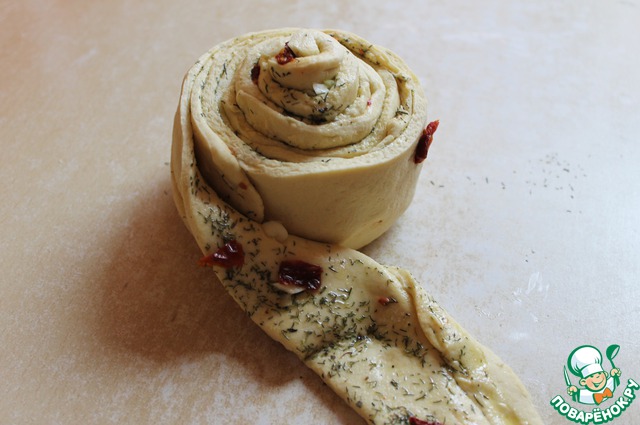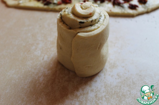 Теперь берем одну полоску, скручиваем ее и ставим наш рулет.