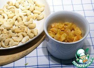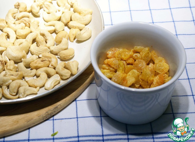 Золотой изюм зальём кипятком и оставим разбухать. -
