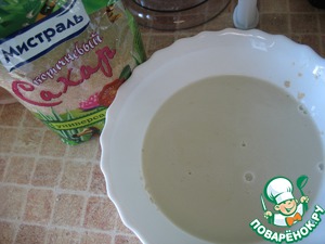 Вливаем в измельченные отруби молоко и добавляем сахар.
