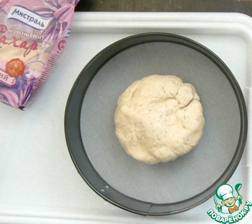 Ввести постепенно муку, вымесить гладкое упругое тесто, завернуть в пленку. Дать тесту отдохнуть в течениe 30 минут.