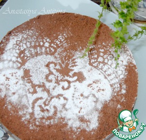 Положила пластиковую резную салфетку сверху, поверх посыпала сахарной пудрой. Аккуратно убрала салфетку.