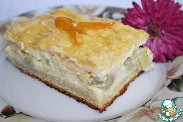 легкая кислинка ревеня,ванильная заливка-все вместе,ну очень вкусно.