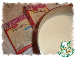 Главное, на что я хочу обратить внимание - это на то, что тесто должно быть БЕЛЫМ в прямом смысле этого слова, если оно будет кремовым или желтоватым, то коржи не получатся желаемого правильного цвета. Именно поэтому я не стала готовить сама бисквит и купила готовую белую смесь. Готовим тесто для коржей, как указано на упаковке. Если вы готовите бисквит сами, то для этого торта понадобится двойная порция.