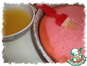 Даём коржам остыть, срезаем верхнюю корочку и пропитываем ананасовым сиропом.