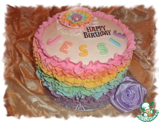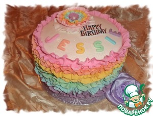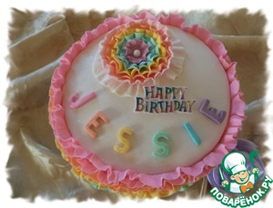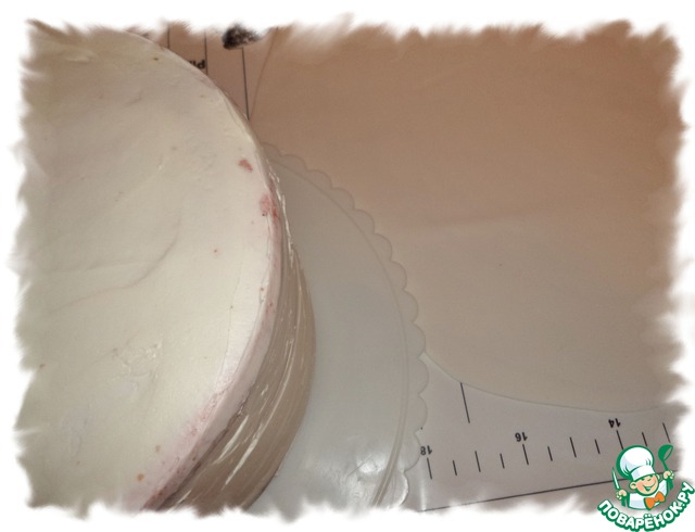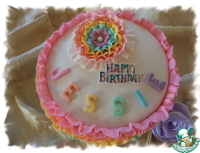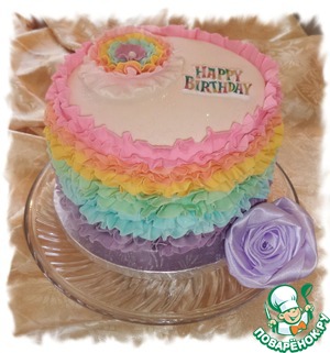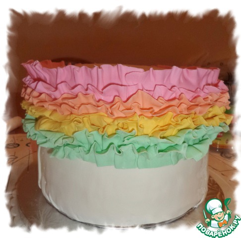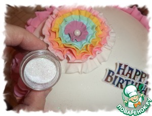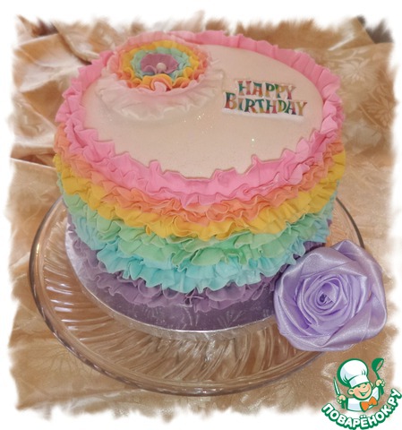 Для оформления торта сверху я заранее сделала радужный цветочек, как его делать, можно посмотреть здесь: http://www.pov arenok.ru/recipes/sh ow/74506/