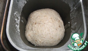 В ёмкость хлебопечки наливаем воду, растительное масло и высыпаем мучную смесь. Ставим в режим замешивания теста. Через час оно будет готово.