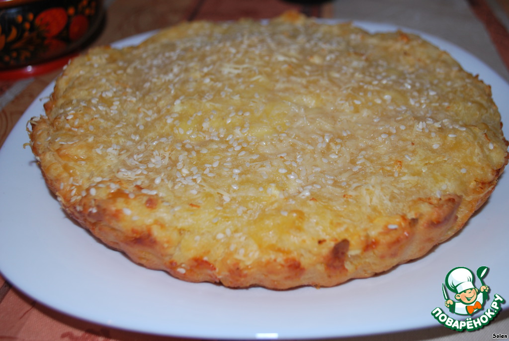 Сверху натереть на крупной терке 50 г пармезана, посыпать кунжутом.