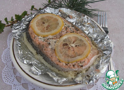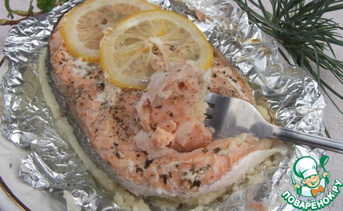 Заворачиваем в фольгу (я даю рыбке в течение хотя бы 15 минут помариноваться) и отправляем в заранее разогретую духовку до 200 град. на 20-30 минут. Этот процесс забыла заснять.