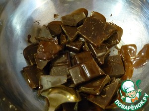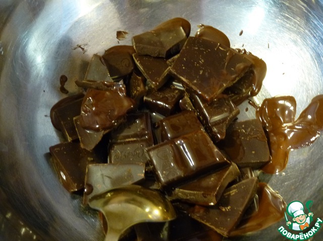 • Готовим конфетки: на водяной бане растапливаем шоколад, добавляем в него подсолнечное масло.