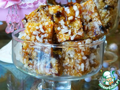 Готовим карамель. На среднем огне нагреваем мед с подсолнечным маслом, когда появятся пузырьки, добавляем коричневый сахар. Когда сахар полностью растворится, полученную карамель выливаем в миску с воздушным рисом, быстро перемешиваем и выкладываем в квадратную форму. Когда масса остынет, козинаки готовы.