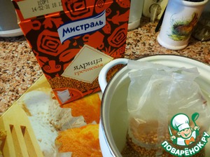 • Сначала нужно приготовить воздушную гречку и рис. Для этого отвариваем крупу до готовности,