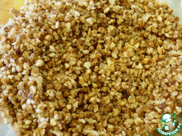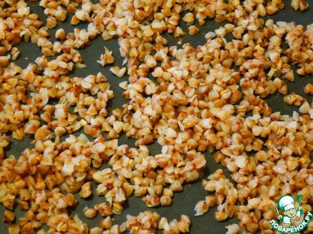 • Далее оставляем крупы сохнуть в духовке при низкой температуре, примерно 100*С, на 2-2,5 часа. Просушить гречку и рис очень важно, иначе может не получиться воздушность. Мне приходилось интервалами оставлять дверцу духового шкафа приоткрытой, для ускорения процесса подсушивания. Ох, не легкое же это дело оказалось….