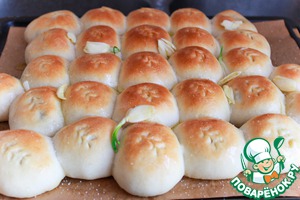Шарики теста с начинкой укладываем на противень на бумагу для выпечки, предварительно смазанную маслом.