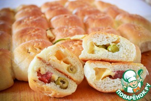 Итальянская выпечка очень разнообразна и есть фокачча, которая состоит из двух слоёв очень тонкого теста, внутри нафарширована сыром, тонко нарезанной копчёной колбасой, сверху посыпана острой приправой (перец, чеснок). Это не пицца, перерыла весь интернет и выяснила, что это именно фокачча. Наберите в Википедии "фокачча", там описан этот вид выпечки. Предлагаю свою интерпретацию этого рецепта, завернув начинку в шарики и, конечно, с оливковым чесночным маслом. Вкус очень понравился.!