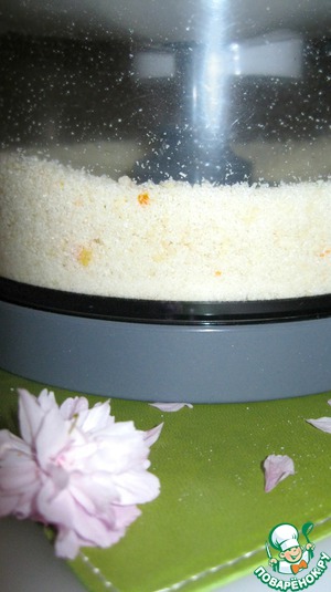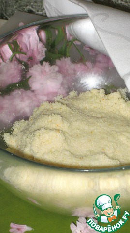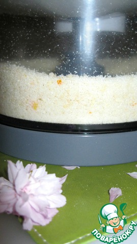 Если же вы используете готовую миндальную муку, необходимо растереть сахар с измельченными цукатами (либо цитрусовой цедрой) и смешать этот состав с миндальной мукой. -