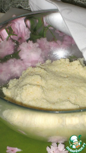 Добавьте полученную смесь к миндалю и влейте сироп. Получится влажная и не очень компактная смесь. На этом этапе так и должно быть. Накройте емкость влажным полотенцем (мокрая ткань не должна прикасаться к тесту!) и оставьте тесто отдохнуть часов на 12. -