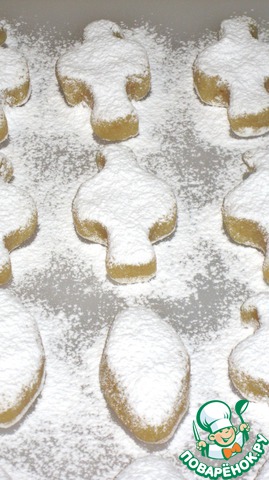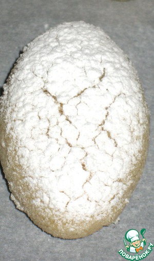 Щедро присыпьте нижнюю часть "голубок" смесью крахмала и сахарной пудры, верхнюю - сахарной пудрой.