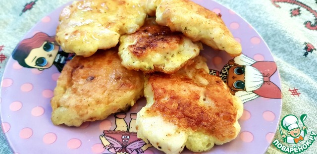 Все хорошо перемешиваем и выкладываем на хорошо прогретую сковороду. Минуты 2 -3 на одной стороне, при хорошей температуре. Переворачиваем, убавляем температуру, накрываем крышкой и уже дожариваем до готовности.