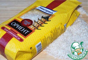 Для приготовления этого блюда можно брать любой рис, который хорошо сохраняет форму и не разваривается, я остановила свой выбор на "Ориент" от "Мистраль".