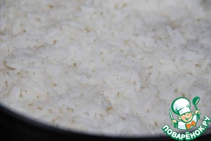 Рис варим по инструкции на упаковке: на 100 гр риса - 200 мл воды, засыпаем рис в кипяток, доводим до кипения, варим на медленном огне при закрытой крышке 20 минут.