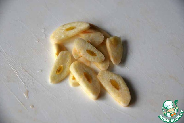 Чеснок нарезать пластинками.