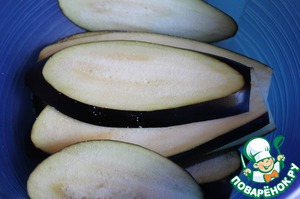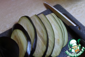 Порежем 2 баклажана вдоль. Лучше почистить.