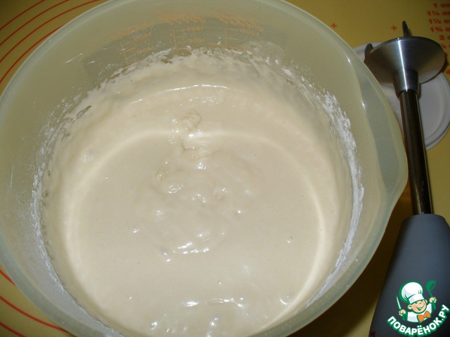 Добавляем 3 ст. муки и размешиваем, чтобы не было комочков.