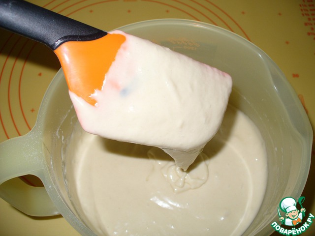 По консистенции тесто примерно как на оладьи.