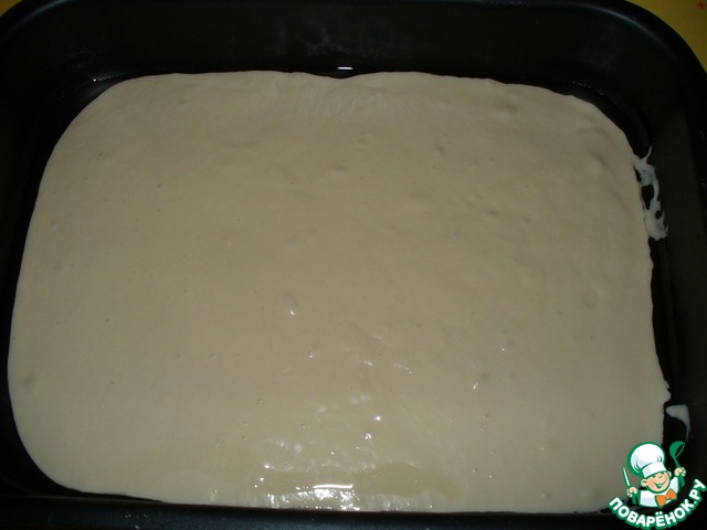 Выливаем половину теста в форму с высокими бортиками. У формы я смазываю только дно.