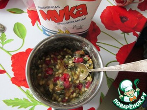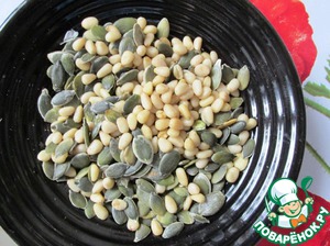 Смешать в миске по большой горсти кедровых орехов и семечек тыквы
