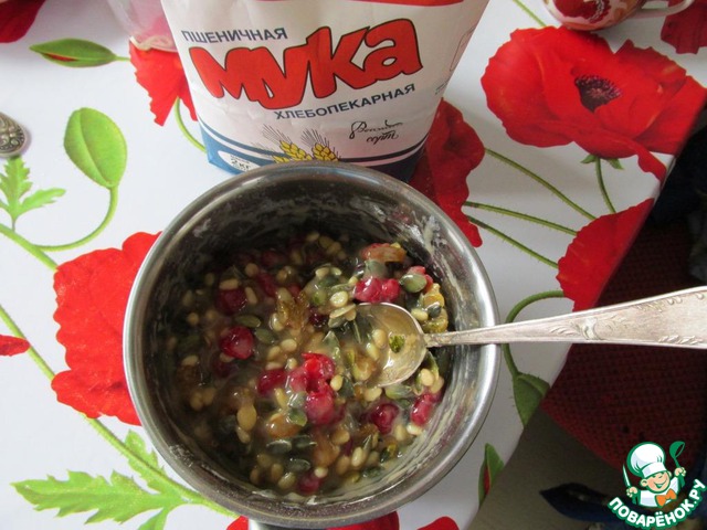 - Мука пшеничная / Мука (2 столовых ложки в тесто, 1 - для посыпки изюма и вишни) — 3 ст. л.
