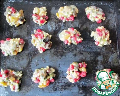 Выложить столовой ложкой кучки теста, подправить пальчиком форму.