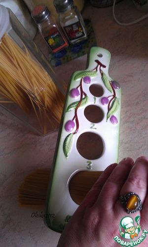 Берём необходимое количество спагетти. Я отмеряю при помощи вот такой штуковины. Не знаю как она правильно называется (это подарок), но очень удобная.
