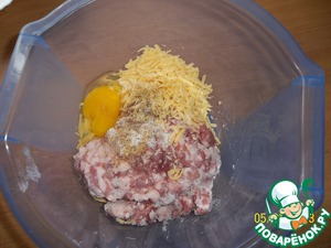 Затем добавляем соль, перец, сухой чеснок, яйцо. Перемешиваем.