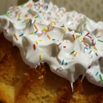 7. Главная (как мне кажется) сложность – осторожно достать готовые куличи из форм, очень помогает оборачивание раскаленной формы влажным полотенцем. Остывать оставляю на кровати, на двойном слое из обычного и бумажного полотенец, чтобы куличи не отмокли и не опали. Глазурь на куличах не очень уважаю (мне кажется, она портит вкус), и наношу совсем чуть-чуть, только чтобы пристала кондитерская присыпка. Глазурь простейшая - сахарная пудра и апельсиновый или лимонный сок. В списке ингредиентов компоненты глазури не указываю, т. к. украшаю только куличи на вынос "привередам"), для собственного использования оставляю как есть.