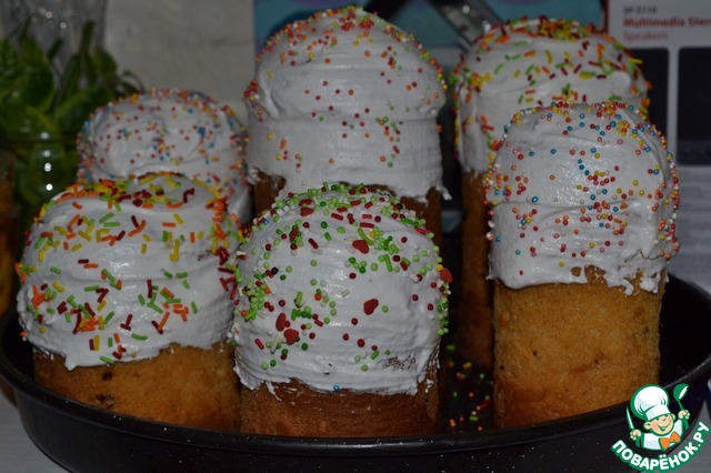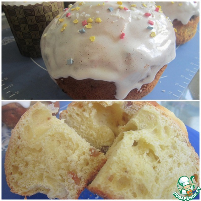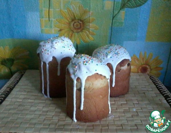 А вот глазури готовила "полную" порцию. Белков-то, мягко говоря, много осталось. Так что куличи я глазурью покрыла ну более чем щедро!