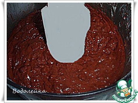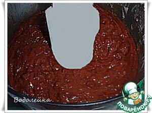 • Продолжая взбивать, добавляем растопленный шоколад с маслом. И, если используете коньяк, добавляем и его.