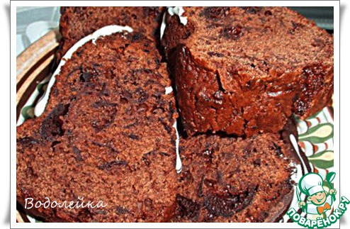 В рецепте этого кекса чудесно сочетаются вишневая кислинка и шоколад. По структуре (из-за вишен) кекс получается немного, как бы, влажноват... но очень и очень вкусный. На сайте я нашла похожий рецепт (там нет яиц, шоколада, масла), он постный.