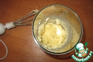 Миксером взбить сахар со сливочным маслом комнатной температуры и яйцом до однородного состояния.