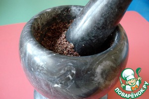 Через 10 часов воду сливаем, мак хорошо отжимаем и растираем его в ступке, пока не побелеет.