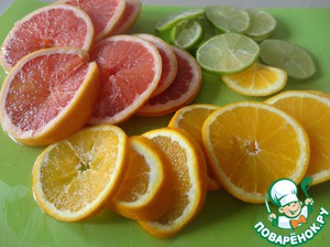 В оригинале рецепта все фрукты просто нарезаются кружочками. Чай в этом случае получается с горчинкой, и дети, как правило, его не пьют. Поэтому я советую вырезать филе грейпфрута и добавить несколько полосочек цедры, тем самым полностью исключив белую часть и перегородки, которые и дают горечь, но сохранив вкус и запах фрукта.