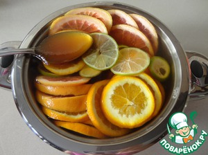 • Первый вариант, который мы приготовим, будет на основе черного чая с грейпфрутом, апельсином, лаймом и медом.