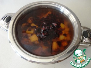 Черный чай с бадьяном, консервированным персиком и ананасом и сушеной клюквой