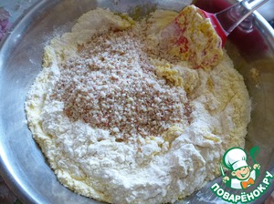 В миску добавляем муку, арахис, разрыхлитель, соль, ванилин, куркуму и замешиваем тесто. -