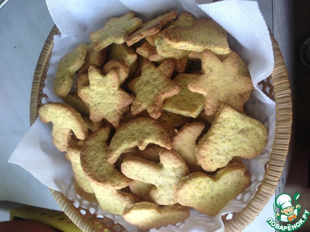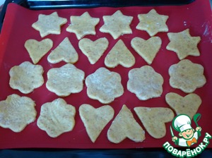 Раскатать тесто, при помощи формочек придать формы и выпекать в духовом шкафу 15-20 минут при 180 градусах.