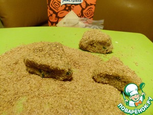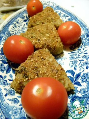 А еще вот так: обваляла сформированные фигурки в перемолотых гречневых хлопьях и обжарила. Получилась хрустящая панировка, чесночок дал дополнительный аромат от теплообработки. Красота.