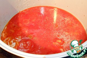 Залить поджарку томатным соком. Слегка разбавить водой, сбрызнуть табаско, чуть-чуть посолить.
