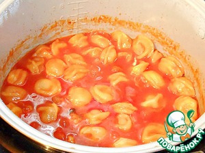 Рецепт «Суп томатный с пельменями и морскими гадами»: