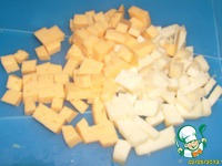 Сыр режем на кубики ~ 1 см. |